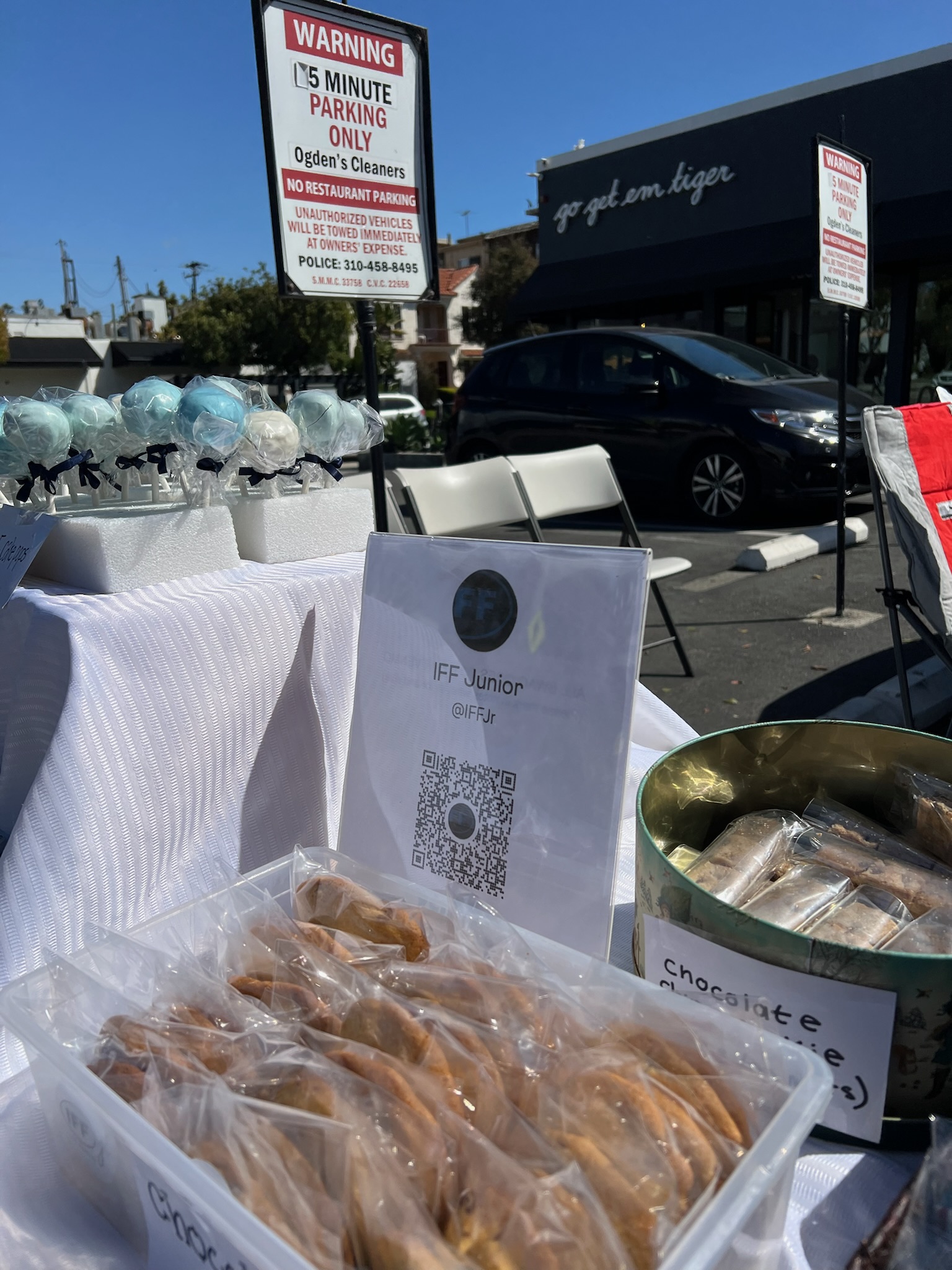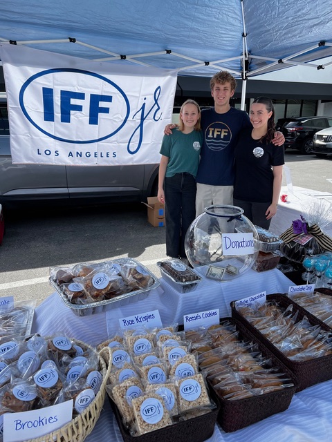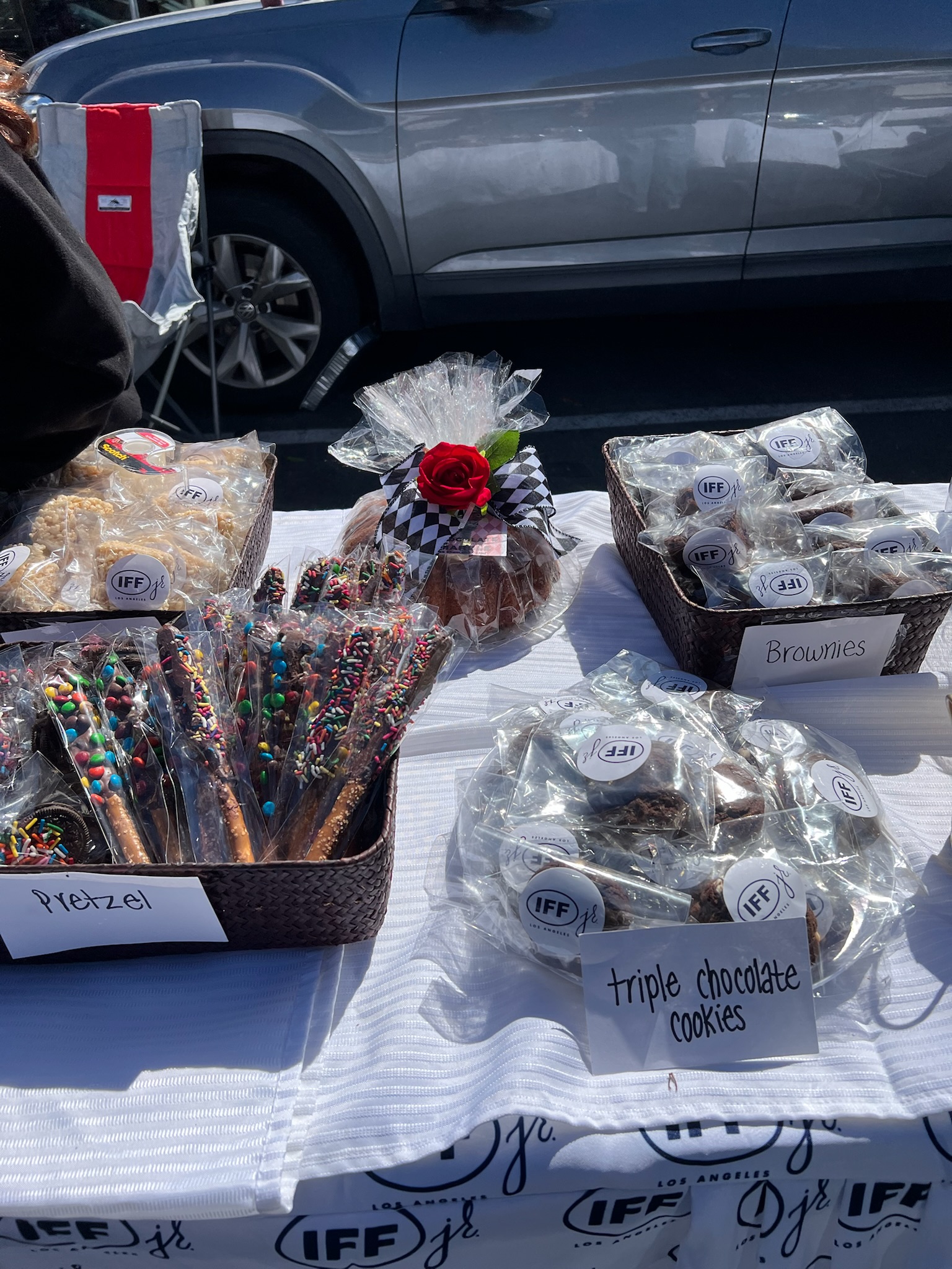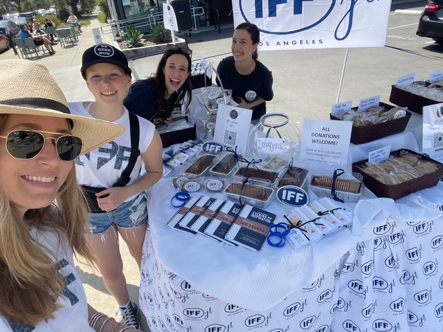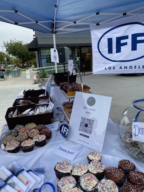 Every year, IFF Jr. LA hosts a bake sale in Santa Monica where they bake over 1,000 cookies and treats! Made from scratch and packaged like a professional bakery, the crowd goes wild for their creations. Family, friends, strangers, and special guests stop by to donate, grab a treat and give a hug! People from around the country and world donate on that special day to be a part of the magic.