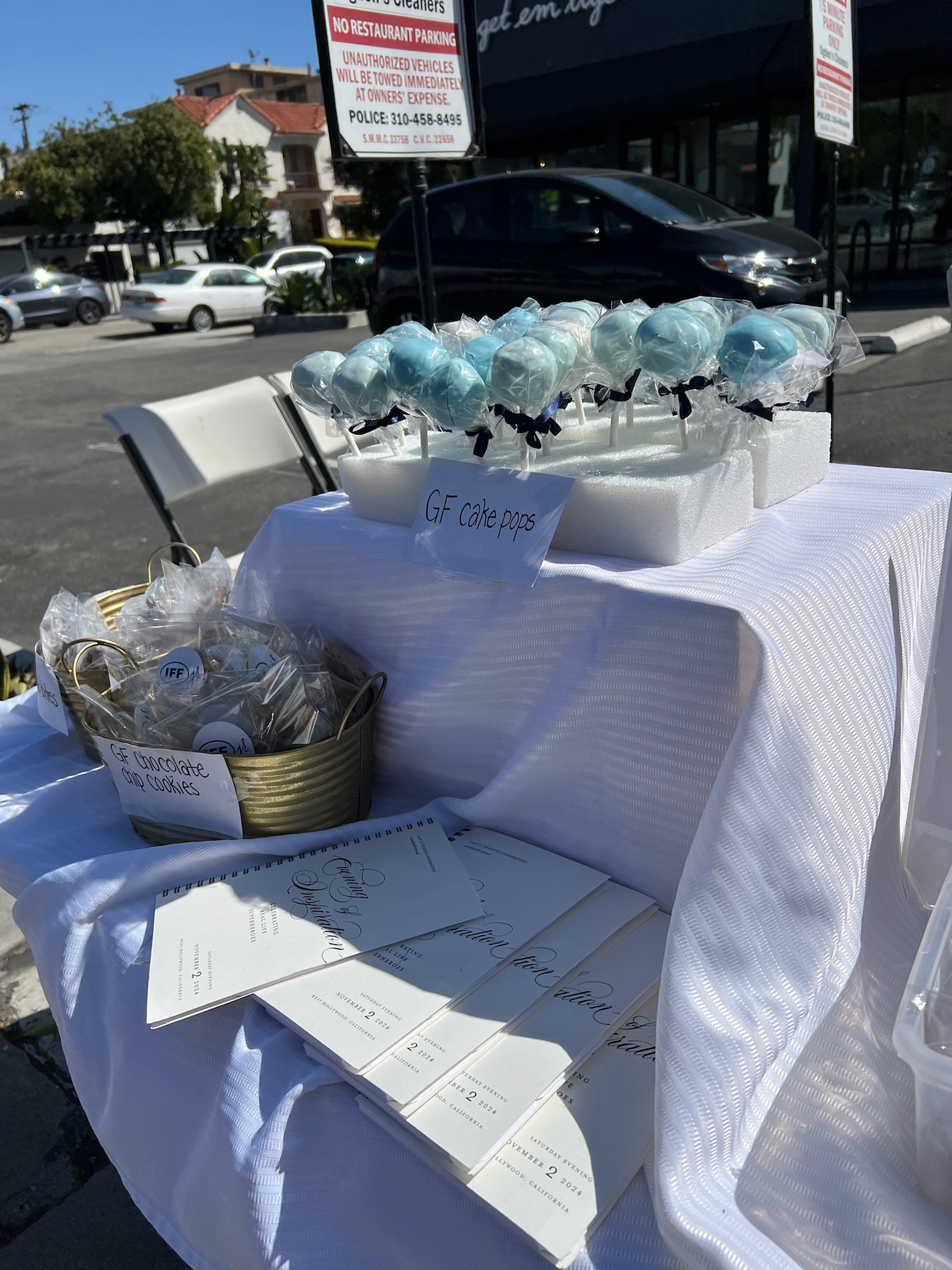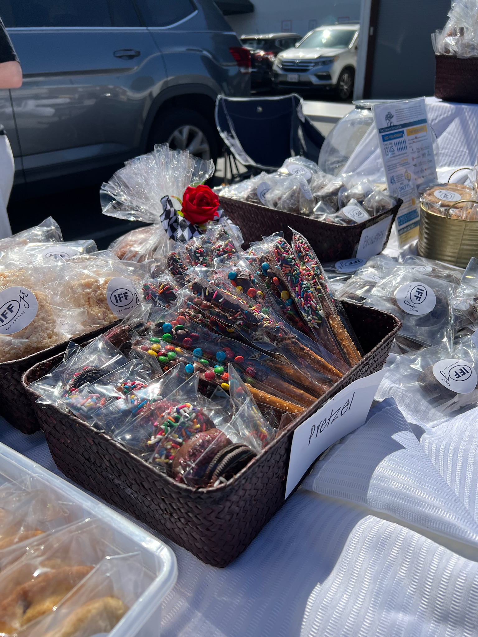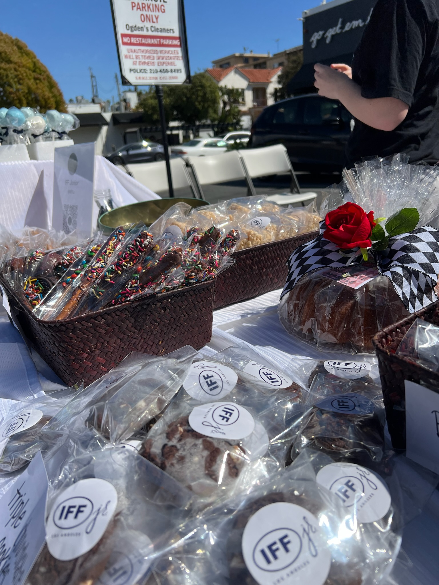 Every year, IFF Jr. LA hosts a bake sale in Santa Monica where they bake over 1,000 cookies and treats! Made from scratch and packaged like a professional bakery, the crowd goes wild for their creations. Family, friends, strangers, and special guests stop by to donate, grab a treat and give a hug! People from around the country and world donate on that special day to be a part of the magic.